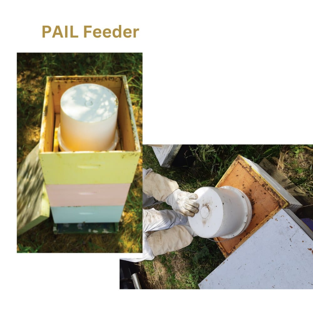 1 Gallon feeder pail for honey bees.  Fits nicely inside another hive box.  It is not too high.
